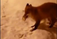 Полицейские угостили дикого зверя свежим хлебом, который тут же рыжая припрятала в сугробе.