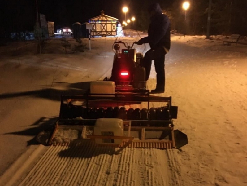 Для подготовки лыжни в Устье теперь используют снегоход и навесное оборудование. Все это приобретено по областной программе «Массовый спорт».