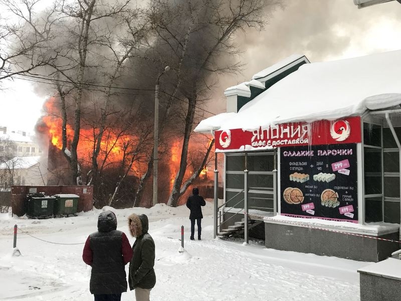 На Зосимовской в Вологде полыхает деревянный дом Фото:Михаил Тихомиров
