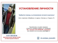 В Вологде устанавливается личность мужчины Фото:ПСО "Ты не один"