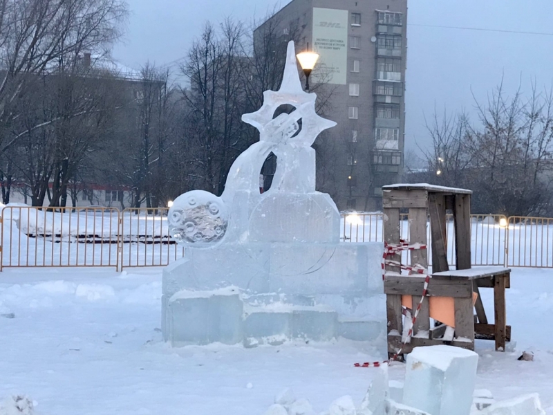 Из 200 ледяных блоков по 150 килограммов каждый, которые доставили на пл. Молодежи, мастерам предстоит сделать произведение искусства, чья жизнь, к сожалению, очень скоротечна.
