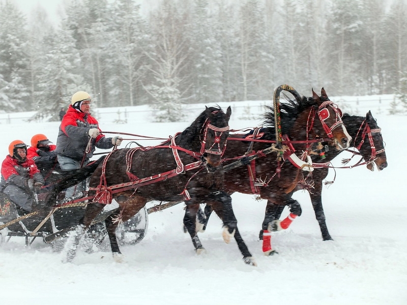В забегах участвовала тройка Вологодского конного завода с коренником Людвигом, управлял лошадьми мастер-наездник Алексей Чистяков.