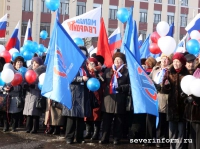 Здесь перед собравшимися вологжанами выступил Глава города, который поздравил всех собравшихся с победой Владимира Путина в президентских выборах.