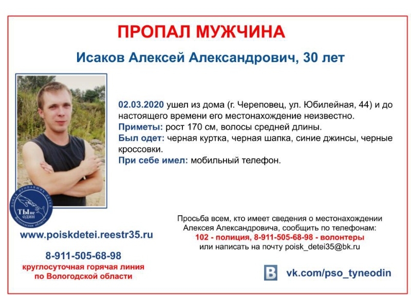 Мужчина жив и здоров. 30-летний Алексей Исаков ушел из дома на улице Юбилейной в городе металлургов еще 2 марта.