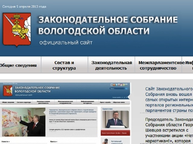 региональных парламентов страны. Такие данные обнародовал Фонд Свободы Информации. В 2013 году сайт вологодского регионального парламента стал третьим в рейтинге