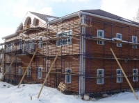 Руководитель центра Надежда Михайловна Ковальская вместе с коллегами и главой сельской администрации Александром Васильевичем Кузнецовым внимательно следят за ходом работ, чтобы учесть каждую мелочь. Само здание построено из пенобетона, но будет обшито деревом, а наличники под окнами поставят такие же, как в вепсском музее Шелтозера.