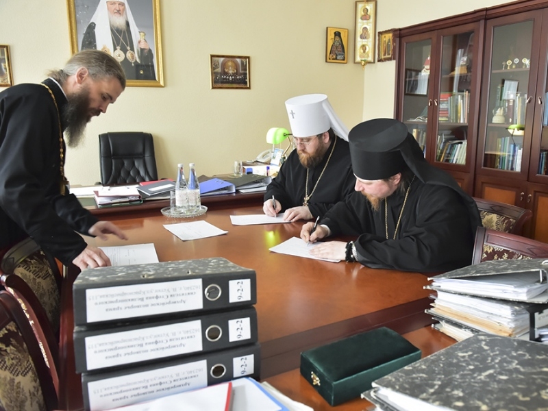 Речь идет о сложении временного управления Великоустюжской епархией. Правоустанавливающие документы и печать епархии переданы новому епископу Великоустюжскому и Тотемскому Тарасию.