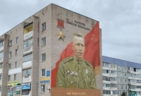 17-метровое изображение Николая Мамонова появилось на Советской, 66. Внизу под поясным портретом надпись "ради жизни на земле". Фасад дома обращен в сторону дороги, ведущей к новой школе. Художник Олег Иванов завершил работу 4 мая.