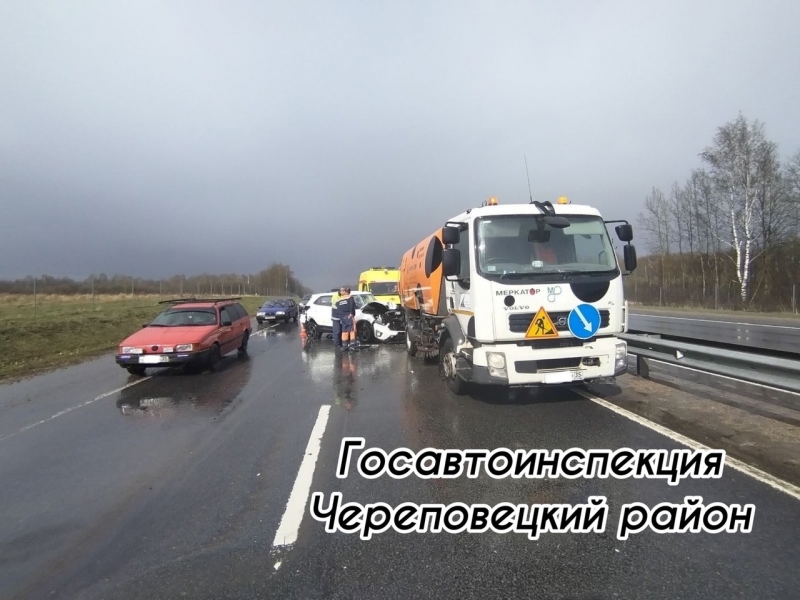 Иномарка наехала на стоящий «Камаз» дорожной службы под управлением жителя Шекснинского района. Потом легковушку откинуло на «Вольво» под управлением еще одного шекснинца и другой «Камаз», за рулем которого находился житель Кировской области.