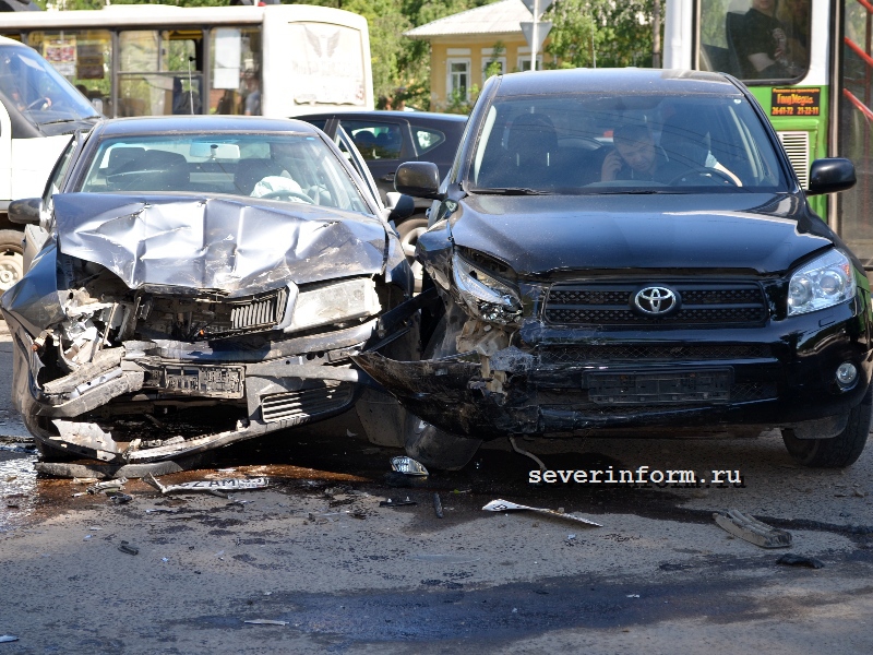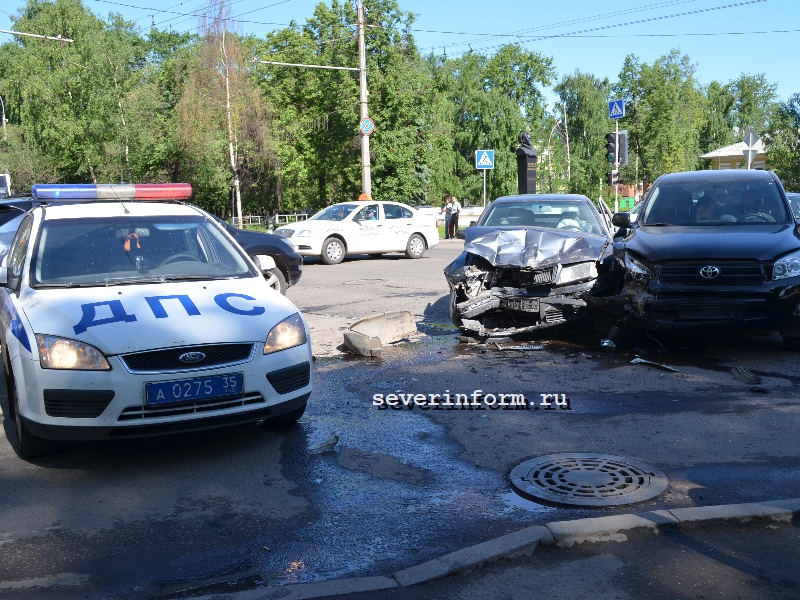Две иномарки столкнулись в центре Вологды. Есть пострадавшие.