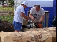 До конца недели можно увидеть, как большие бревна превращаются в изящные скульптуры. Древесину привезли из Ярославской области. Каждой из семи команд по одному бревну и еще три в запасе. Тема этого года - семья. Участники из разных регионов России уже в конце недели покажут готовые скульптуры, а наше жюри выберет лучшую.