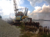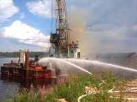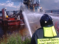 Плавучий кран загорелся в Вологодской области. В результате пожара пострадали два человека.
