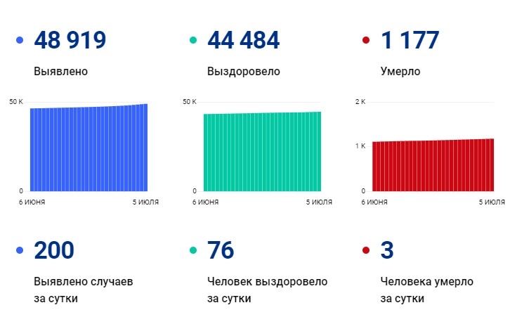 Общее число вологжан, которым поставили диагноз «коронавирус», достигло почти 49 тысяч. Выздоровели почти 44,5 тысячи человек, за сутки – 76. Скончались еще трое, всего в регионе – 1177. Таким образом, сейчас в области более 3200 активных больных. Их становится всё больше, в том числе, тяжелых пациентов.