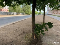 Земля будет на 5 сантиметров ниже бортового камня. Благодаря этому грязь во время дождей не стекает на дорогу. Газон оформят на участке от Белинского до Красной. Благоустройство уже началось.