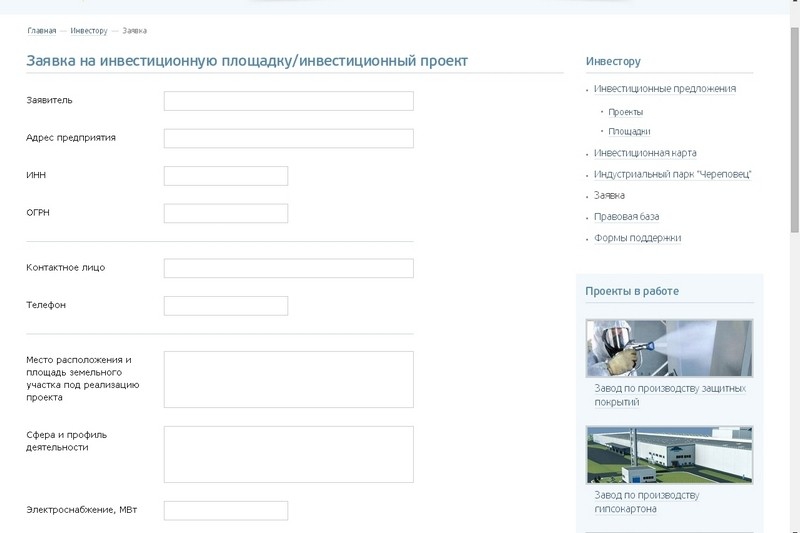 Череповце. Соответствующая форма появилась на сайте инвестагентства города металлургов. Ее могут заполнять все желающие реализовать свой бизнес-проект.