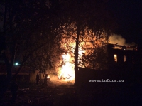 Деревянный дом полыхает в центре Вологды. Здание на улице Благовещенской, 51а загорелось около 21:30. Как рассказывают очевидцы, огонь охватил дом в считанные минуты.