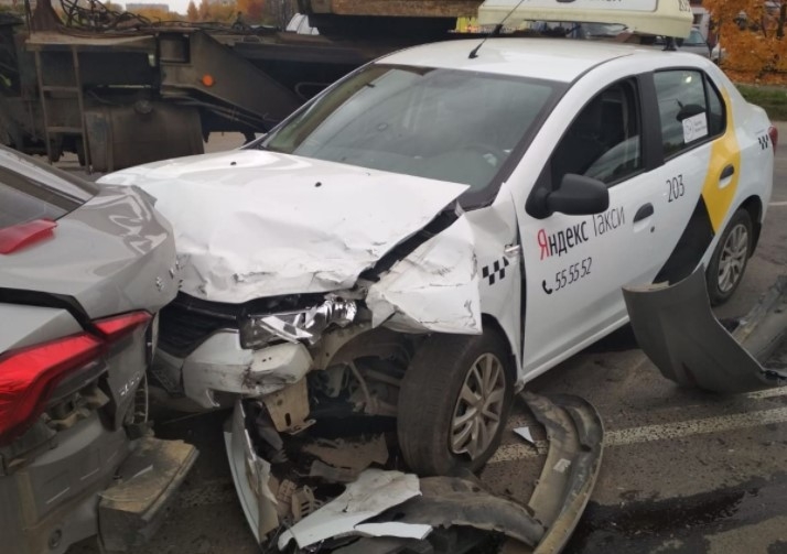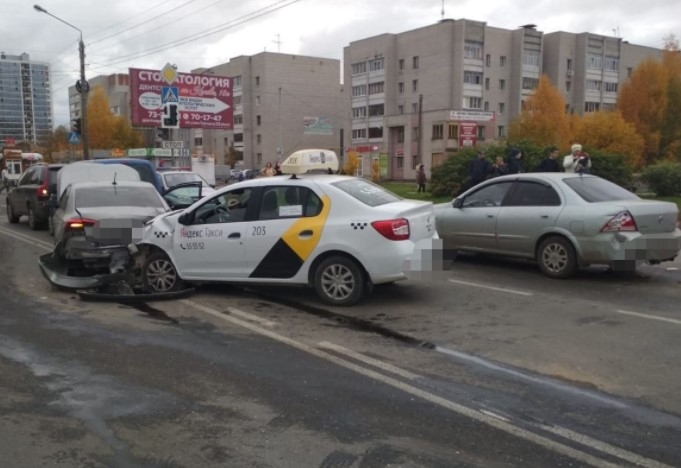 Водитель «Рено Логан» не затормозил перед транспортными средствами, остановившимися на светофоре, и врезался в них. По данным ОГИБДД по Вологде, травмы получил сам таксист. Установлено, что мужчина находился в состоянии алкогольного опьянения. Автомобили значительно повреждены.