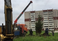 Во Фрязиновском парке взамен сгоревшей на солнце ели посадили новую