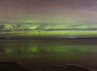 Над Рыбинским водохранилищем небо окрасилось в зеленый цвет