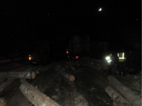 Полицейские установили, что лесовоз занесло при попытке уйти от столкновения с двигавшимся попутно мопедом «Альфа». 34-летний водитель лесовоза экстренно затормозил.