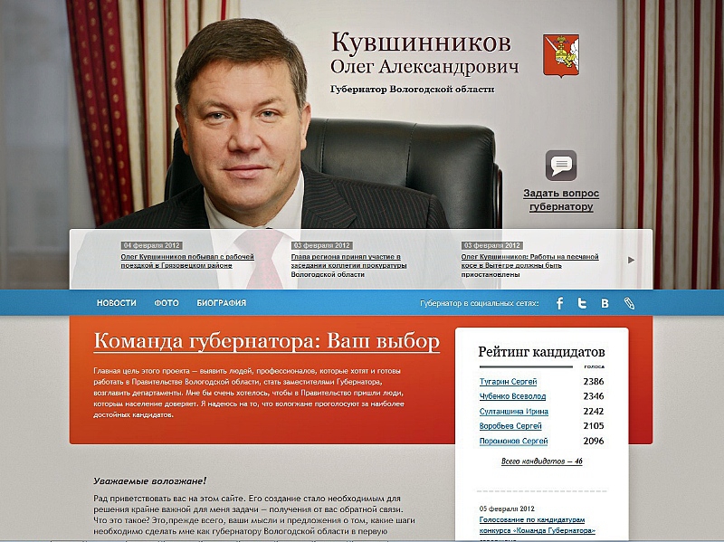 Голосование за кандидатов в «Команду Губернатора» завершилось в Вологодской области. Об этом сообщает ИА «СеверИнформ — Новости Вологодской области». Информация об окончании голосования за кандидатов в «Команду Губернатора: Ваш выбор» появилась на официальном сайте Олега Кувшинникова накануне, 5 февраля. В этот день в области завершилось уличное и Интернет-голосование по кандидатурам, а также состоялось итоговое заседание наблюдательного совета.