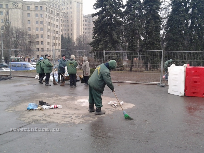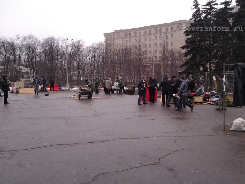 «Лагерь уже разобрали. Утром приехала милиция и коммунальные службы. Они стали снимать заграждения и все вывозить. Народу под утро в лагере оставалось человек 40 - все разошлись на работу, учебу и так далее. Оставшиеся пошли возлагать цветы и венки - в это время проходило прощание с погибшим милиционером. Добавлю, пока в лагере была неразбериха, к нам подходили харьковские милиционеры и выражали солидарность. Они прямым текстом говорили, что штурмовать нас и исполнять подобные приказы они не будут. Но ходят слухи, что сюда могут пригнать милицию западных областей, а эти уже все будут...», - рассказал корреспонденту ИА «СеверИнформ» вологжанин.