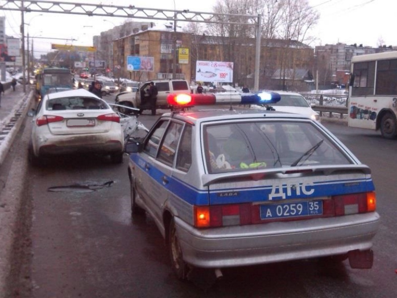 В Вологде в аварии с четырьмя автомобилями пострадала женщина