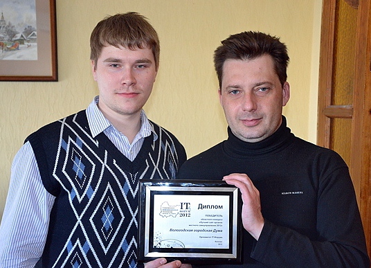 Диплом победителя областного конкурса «Лучший сайт органов местного самоуправления 2012 года» и сертификат на бесплатную разработку концепции дизайна сайта представителям городского парламента вручили организаторы форума. Лучших из лучших выбирали эксперты из Правительства Вологодской области, «Клуба директоров по информационным технологиям Вологодской области» и оргкомитета форума.