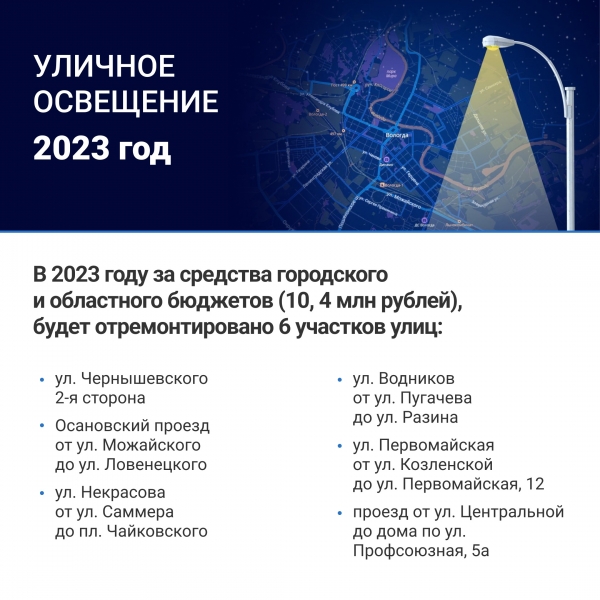 В этом году в Вологде в планах сделать светлее 6 участков городских улиц.