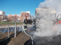 «КАМАЗ» сгорел в выходные в Череповце. Происшествие случилось около 8 часов утра в субботу, 4 мая. Грузовик находился возле дома на проспекте Победы, 136 города металлургов. На тушение выезжали две автоцистерны. Через несколько минут возгорание ликвидировали.