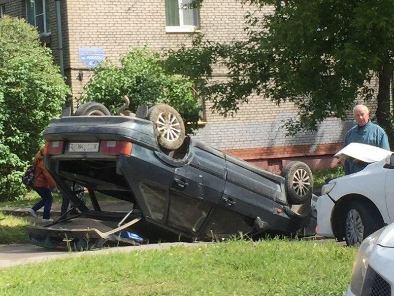 Автомобиль ВАЗ-2114 перевернулся сегодня на Проспекте победы.