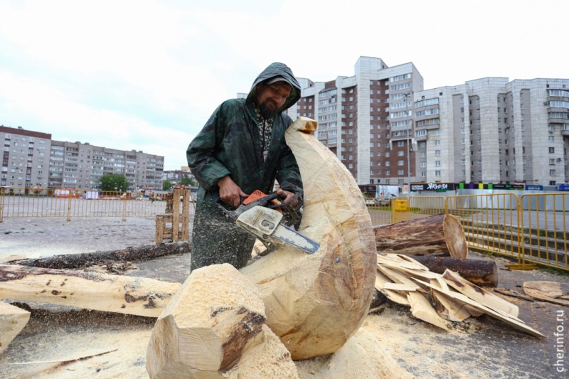 Площадь Химиков в Череповце обрастает деревянными фигурами