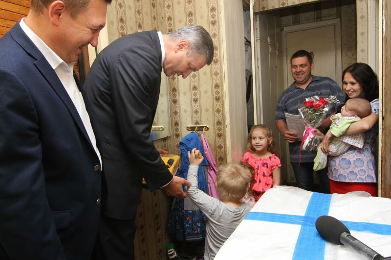 В преддверии Дня семьи, любви и верности семейство посетил председатель Законодательного Собрания области, региональный секретарь партии «Единая Россия» Андрей Луценко. Он и вручил вологжанам подарок – стиральную машину: