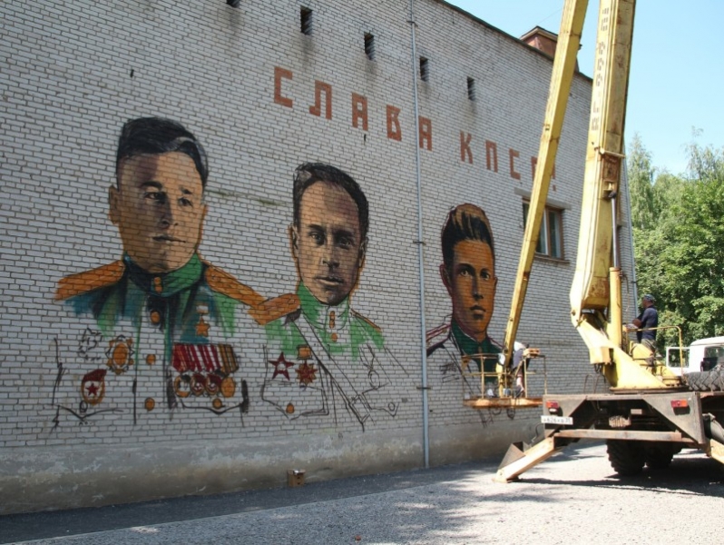 Работу выполняет вологодский художник Олег Иванов. Портреты Героев Советского Союза уже появились на фасадах зданий в Череповце, Сямже, Вытегре, Соколе и Кадникове, сообщает ИА «СеверИнформ».