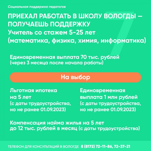 Вологде нужны учителя математики, физики, химии и информатики, так как во многих школах сделана ставка на техническое и естественно-математическое направление.