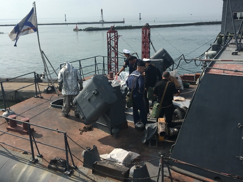 Учения моряков балтийского флота по ликвидации возгорания на корабле