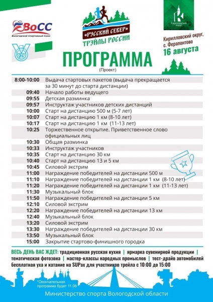 16 августа на живописных просторах Ферапонтова монастыря стартует трейл "Русский Север". Как сообщают организаторы, это не просто спортивное мероприятие, а настоящий праздник для всей семьи и друзей, сочетающий в себе беговые дистанции, активный отдых и насыщенную развлекательную программу.