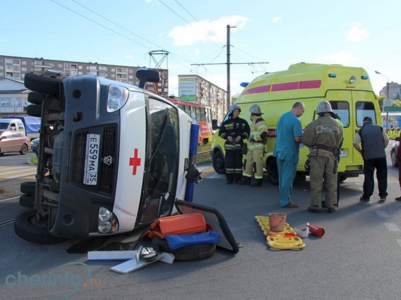 В Череповце в результате ДТП перевернулась машина скорой помощи