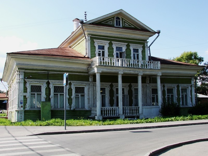 Здание построено в 1790 годы и перестроено в конце XIX века. Это старейшее сохранившееся деревянное здание в Вологде, памятник деревянного зодчества. Дом построен в стиле классицизм, автор проекта неизвестен. Центр фасада обозначен четырехколонным портиком, который поддерживает небольшой балкон. Фасад завершен треугольным фронтоном.