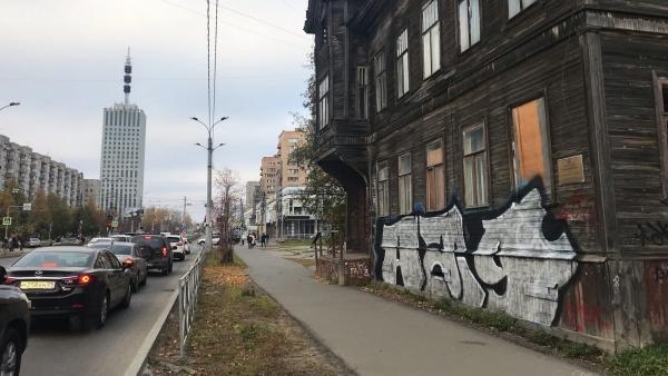 Гигантское граффити появилось на фасаде Дома Овчинникова, расположенного в самом центре горда, на улице Воскресенской. Памятник архитектуры регионального значения Дом Овчинникова – единственный деревянный дом со столетней историей, который остался в том месте.