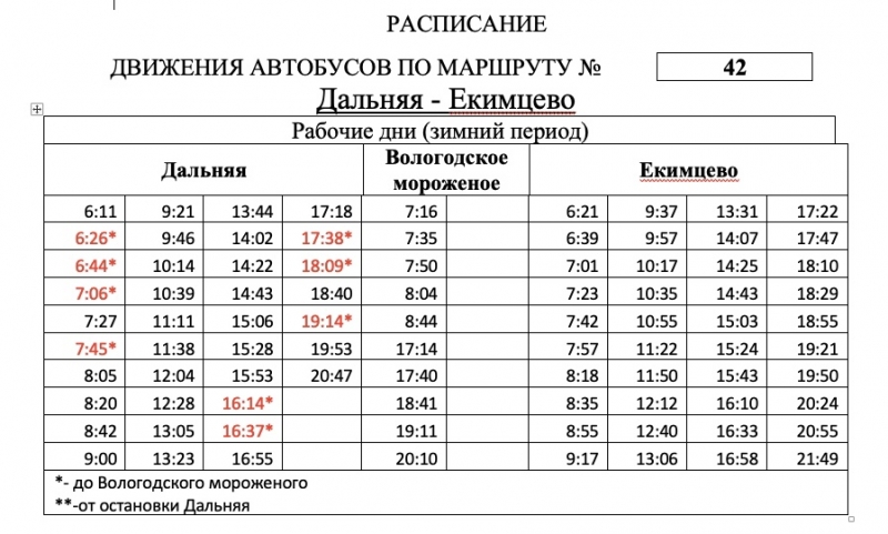 Автобусный маршрут № 42 переходит на зимнее расписание