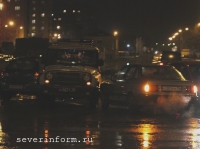 Автомобиль въехал в стоявший на перекрестке полицейский "УАЗ". После этого с другой стороны в бок автомобиля сотрудников полиции въехала еще одна легковая машина. Водитель поворачивал направо с Конева на Воркутинскую. Травм участники дорожного движения не получили.