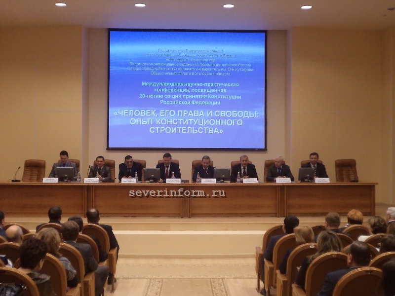 В Правительстве Вологодской области открылась научно-практическая конференция «Человек, его права и свободы: опыт конституционного строительства». Мероприятие посвящено 20-летию Конституции России. В работе конференции принимают участие государственные и общественные деятели области, иностранные гости, представители органов власти и специалисты в области конституционного права. Они обсудят проблемы реализации прав и свобод человека и направления совершенствования законодательства. Обсуждению этих вопросов будет посвящена работа трех секций.