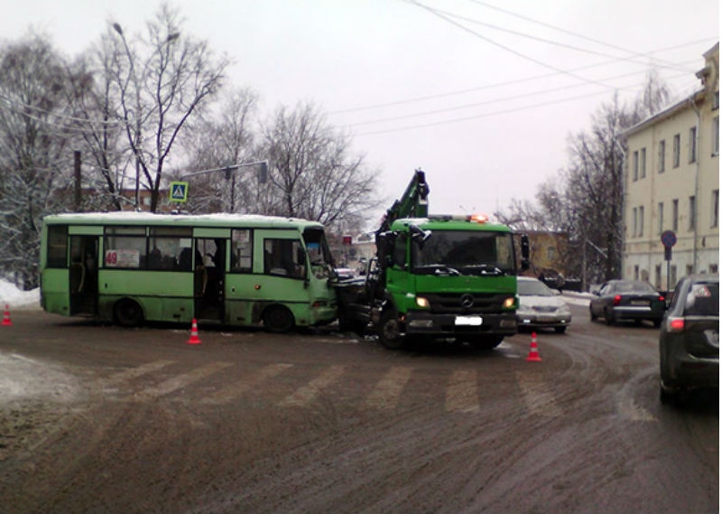 Автобус в центре Вологды врезался в эвакуатор