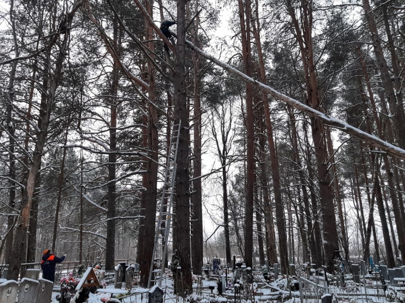 Cломанное дерево нависало на высоте около 15 метров. Проблема возникла на кладбище в Анхимовском сельском поселении Вытегорского района.
