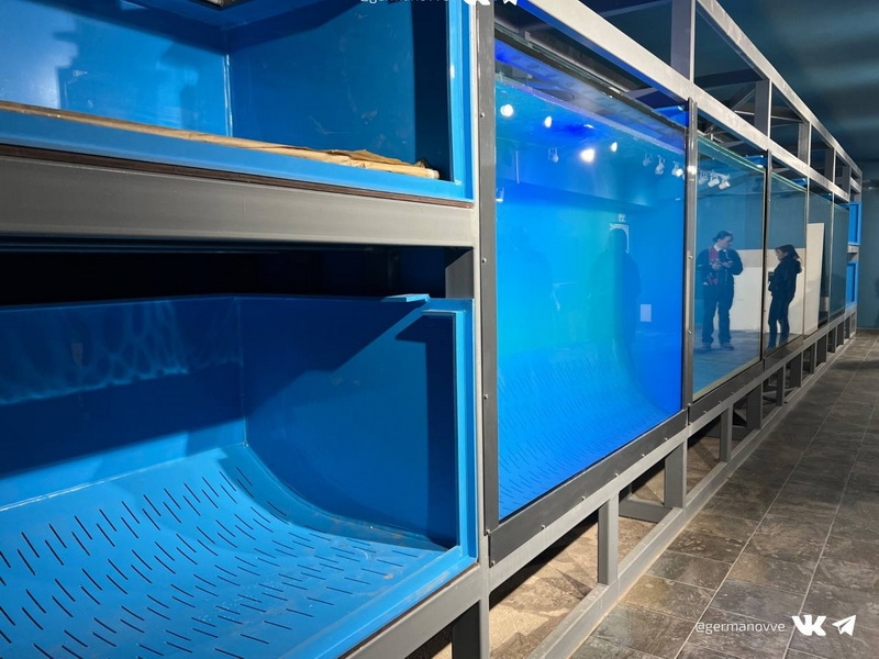 На цокольном этаже музея будут поставлены девять больших аквариумов. Четыре на тонну воды, пять - на 2,5 тонны.