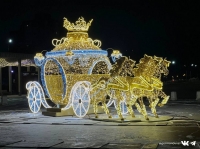 «Карета, запряженная тройкой лошадей, сбывшаяся мечта череповчан о том, чтобы внутрь арт-объекта можно было зайти. Уехать на бал вряд ли получится, но и в тыкву в полночь она не превратится. Арт-объект занял центральное место на площади у Дворца металлургов», - прокомментировал фотозону мэр города Вадим Германов.