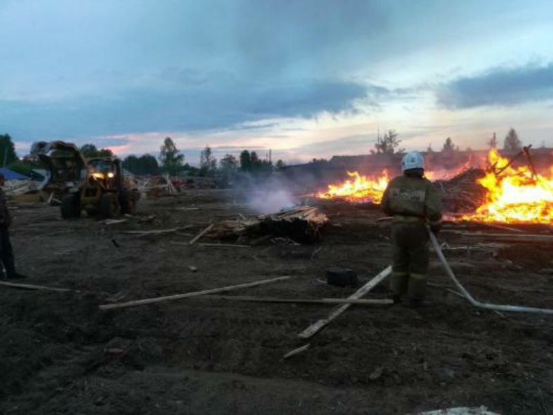 С момента сообщения о возгорании до приезда пожарных прошло полчаса. А вот ликвидировать огонь удалось спустя только 4,5 часов. Горели отходы деревообработки, которые лежали прямо на открытом воздухе, а не в крытом помещении. Кому принадлежат пиломатериалы, еще предстоит выяснить.
