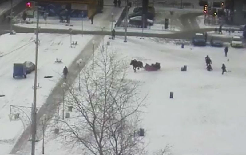 Прогулочная лошадь с санями бесконтрольно понеслась по площади в Череповце