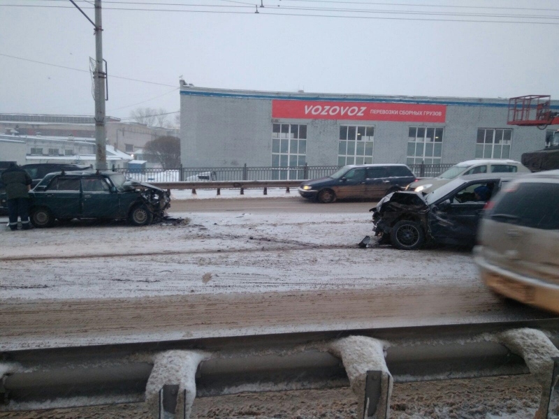 Две легковушки и грузовик столкнулись на мосту в Вологде